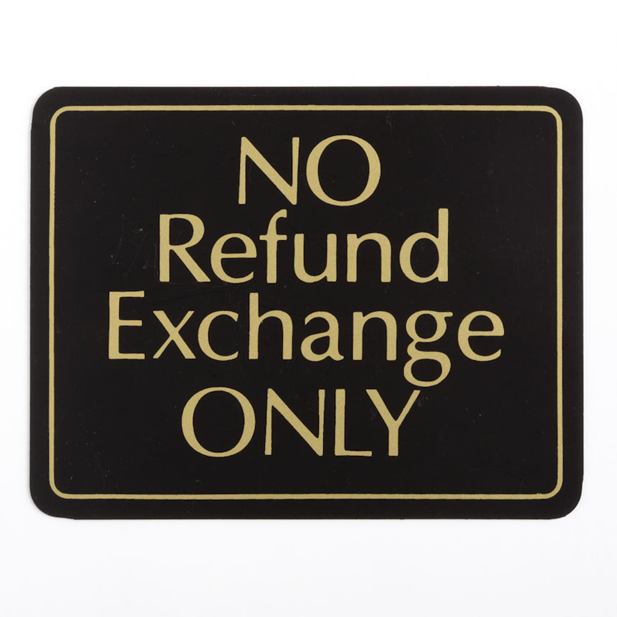Black sign with gold print made with heavyweight plastic 5 1/2″ H X 7″ H