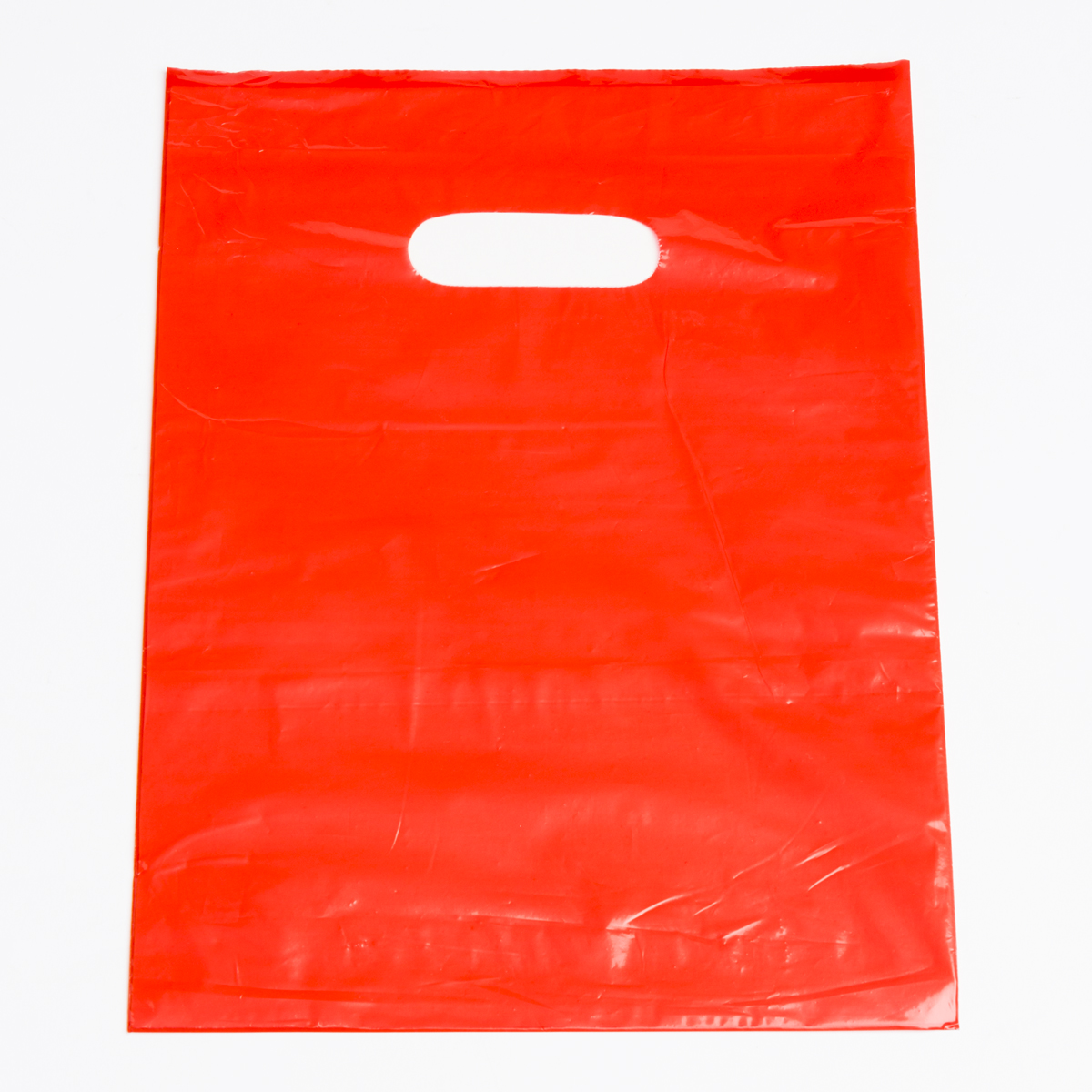 A&B Store Fixtures’ small red plastic bag is a colorful, value oriented, space saving option to paper bags. This low density shopping bag is ideal for jewelry, candy, cards or other small items. This merchandise bag adds character to every purchase. Large inventory in stock, multiple colors available. Choose the one that expresses your store’s image. It coordinates with our selection of tissue paper and boxes.
