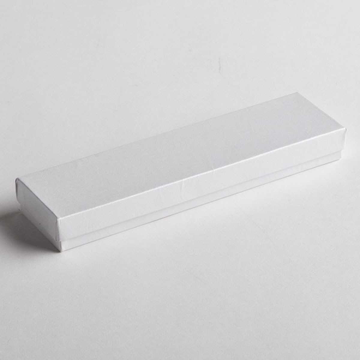 A&B Store Fixtures’ white swirl bracelet box has a cotton filling to display and protect the jewelry. Pearlized finish on box top and bottom adds an upscale look to all jewelry purchases. Perfect for bracelets, also commonly used as watch box. Sturdy construction protects jewelry and provides gift box look and feel. Large inventory in stock. Choose from an assortment or solid colors, patterns and textures. Coordinates with tissue paper and paper bags.